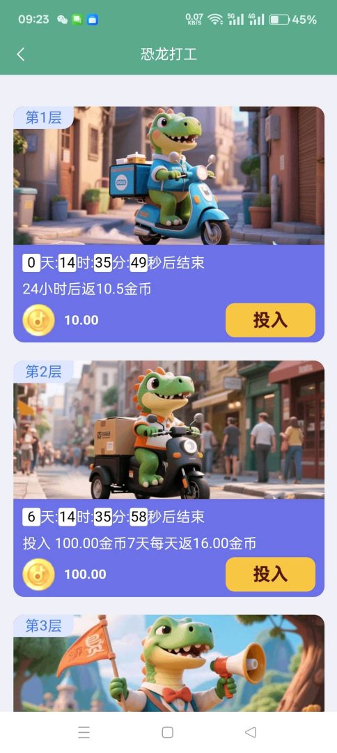 3、通过玩手游升级、开始龙珠盲盒,都能获得分红恐龙每日分红,或者获得零钱恐龙直接兑换提现