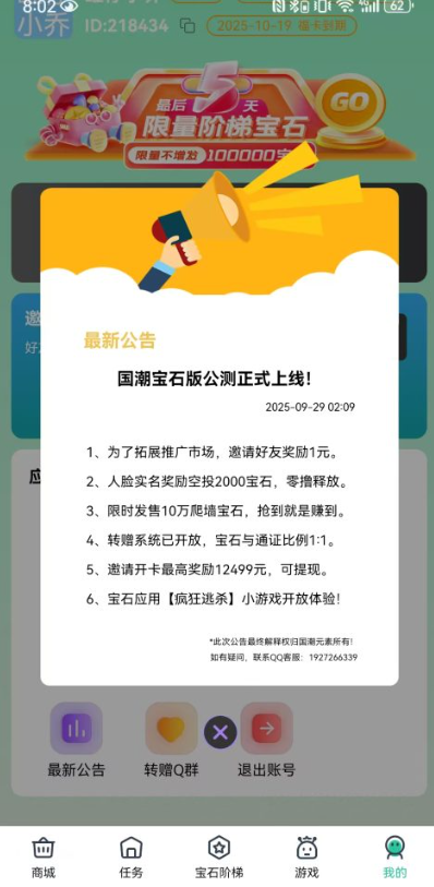 国潮宝石是全新上线的首码项目。新用户注册实名认证直接送2000宝石。提供两种赚钱玩法,宝石市场价格3元每个,可通过看广告或购物获得宝石,直接出给管理变现。