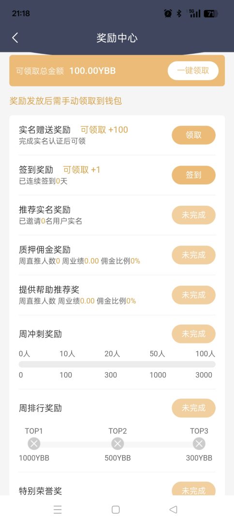 直推一人奖励3YBB加60算力。团队奖励额外10算力。下级质押金额上级享受提成。算力越高挖矿产出YBB越多。真正实现零成本持续收益。