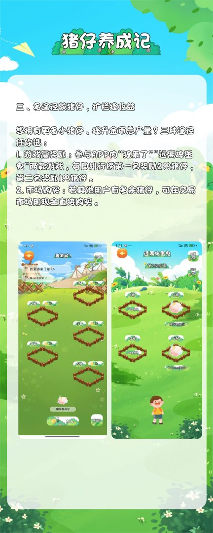 通过简单的猪仔养成玩法,无需复杂操作,稳定获得收益奖励。