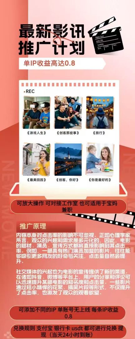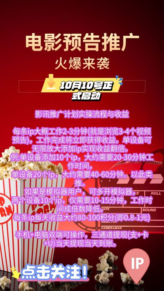 电影预告推广火爆来袭10月10号正式启动免费测试安装,三通道姿琻提取影讯推广计划实操流程与收溢