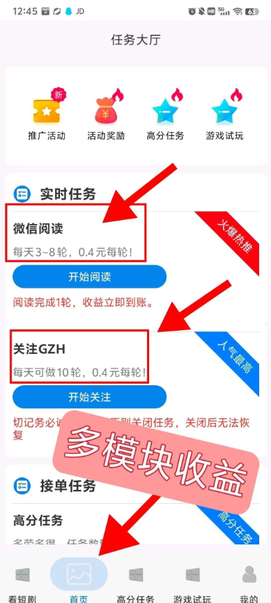 在柚米看点,阅读单价限时上涨至0.4元每轮,GZH有效关注任务同样高达0.4元每轮。这样的高收益吸引了众多用户参与。