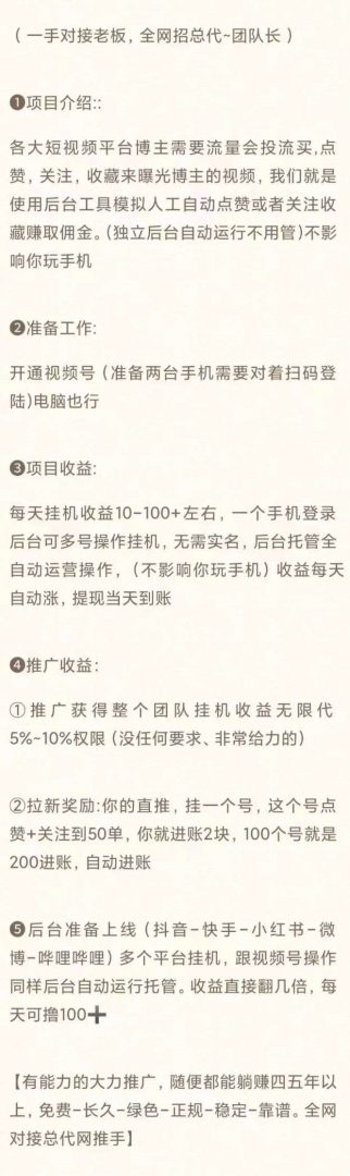 7月初,我们的抖音板块也已上线,采用同款后台双管道运行,日收益范围在30到50元之间。这意味着只要你愿意推广,就能轻松实现三年以上的稳定收入。零成本、长周期、绿色正规,绝对稳健,全网开放对接。