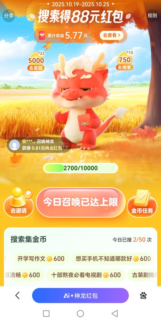 召唤神龙游戏现已正式上线,这款游戏让你通过简单的答题就能获得收益,而且完全不需要任何投资。很多玩家都在期待这个项目,现在就是加入的最佳时机。