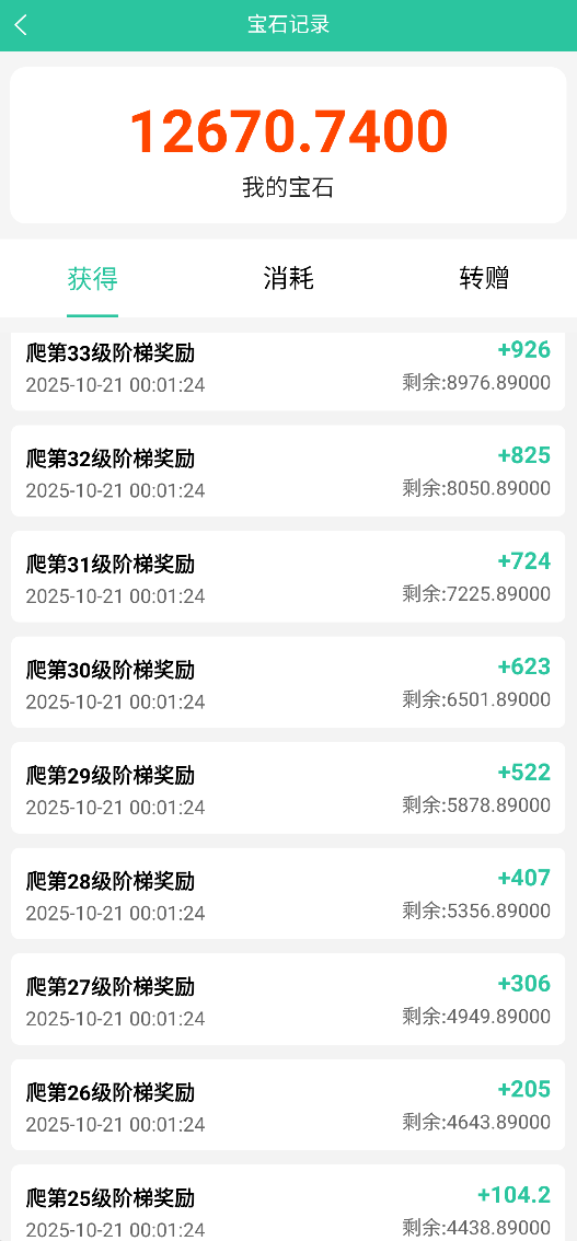 3、零撸玩家参与爬楼,最高5层阶梯,收益1.3宝石,一个月润39个宝石,润117米。