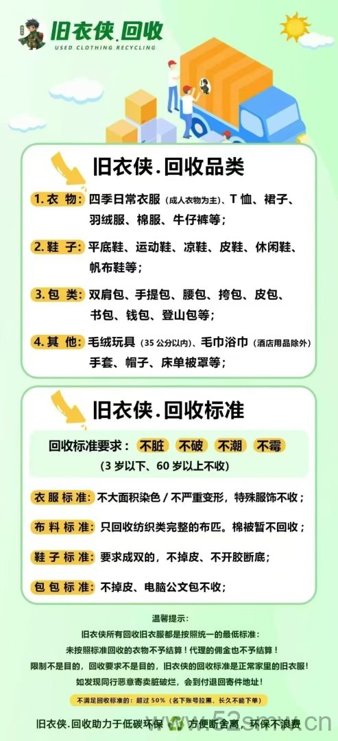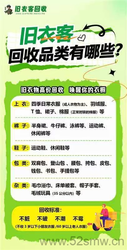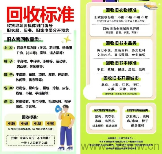 旧衣服回收让闲置衣物变现金。家中不用的衣服、裤子、鞋、包、帽子、围巾、床单被罩,甚至小毛绒玩具,只要总重满3公斤,就能享受上门取件服务。