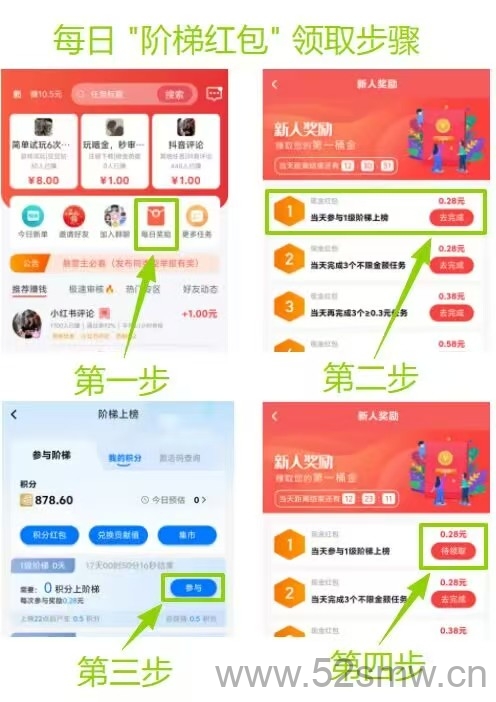 完成爬楼任务后,记得前往首页领取每日奖励现金红包。这些红包为用户提供了额外的收入来源,使得每一天都充满惊喜。在【趣任务Pro】上,赚钱变得如此简单易行,适合任何想要增加收入的人士。