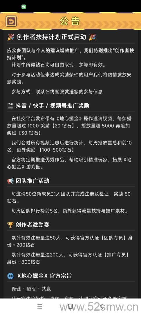 必火首码全民淘金打开后直接进入首页,注册即送100颗钻石的挖掘机,钻石可直接兑换多台产出设备。安装挖掘设备后系统自动开始产出G收益,三天即可回本并拿到约20元现金,收益可循环复投,翻倍效果明显。