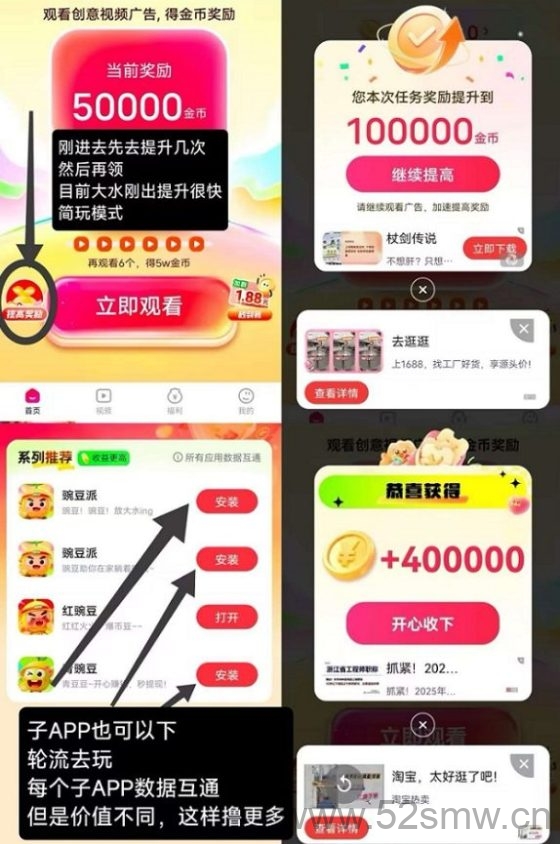 豌豆派安卓掘金神器,无门槛零撸项目,刷视频看广告赚米,豌豆派是多鱼夺宝他们家的平台,豌豆派这个平台看广告收益是非常不错的,最近很多小伙伴一天都零撸50多米,放水一直持续。