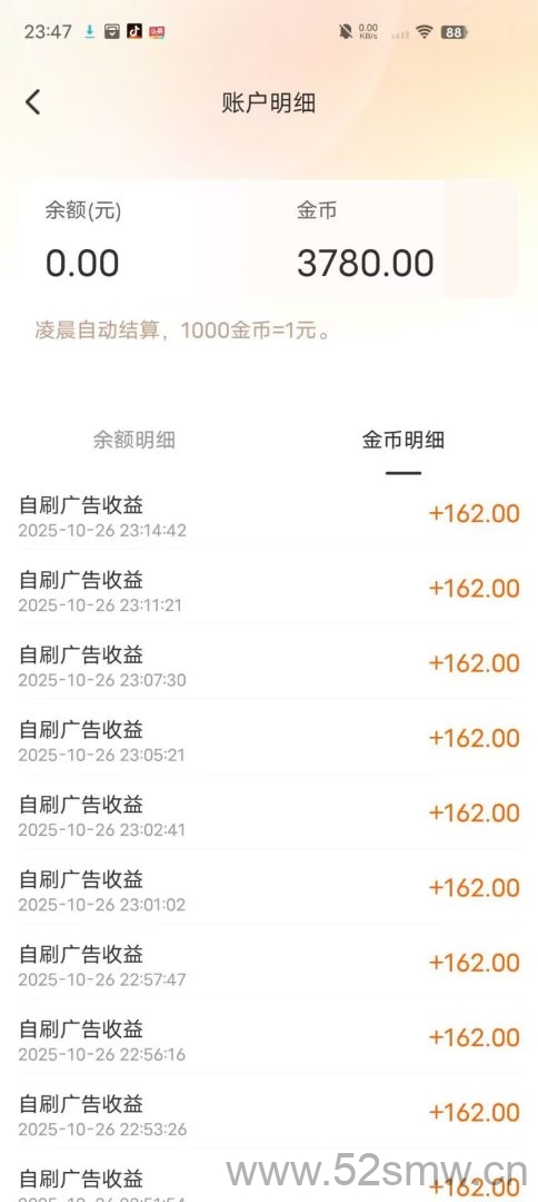 玩赚魔方打开后直接进入登录页面,完成手机号或微信注册即可开始观看广告,系统每推送一条完整广告即发放约0.16元收益,观看间隔20秒后可继续点击下一条,平台每日上限40条广告,累计收益满1元后可在系统内兑换专属宝箱,宝箱名称必须与系统显示名称一致方可成功兑换,兑换后收益自动转入账户余额。