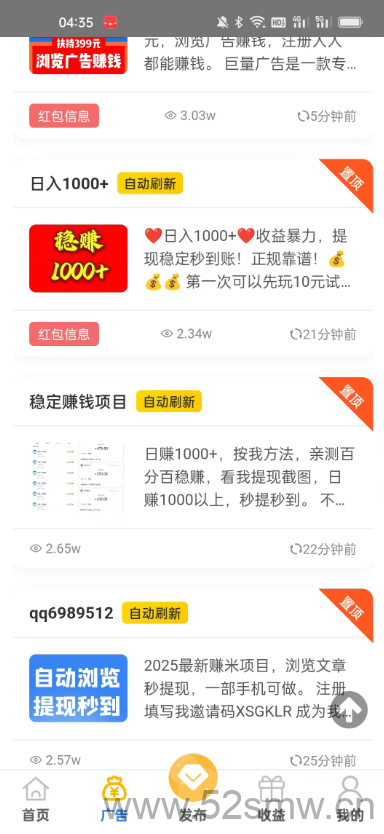 登录后进入“发布项目”页面即可免费发布广告信息,平台每日向发布者推送潜在用户,提升曝光率,进一步增加收益渠道。