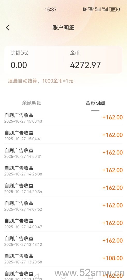 玩赚魔方打开后直接进入登录页面,使用手机号或微信完成注册即可开始观看广告。系统每日推送40条完整广告,观看一条即获得0.16元平台币,广告之间间隔30秒确保记录准确。平台币与金币比例为1000金币=1元,系统在凌晨自动结算并转入账户,用户无需任何手动操作即可看到收益。
