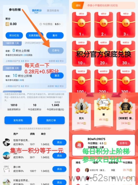生成专属邀请链接分享给好友,邀请成功后每日可额外获得2.74元现金红包和相应积分,下级用户每爬一层楼平台额外返还20%积分,积分同样可兑换现金,收益随团队规模增长而提升。