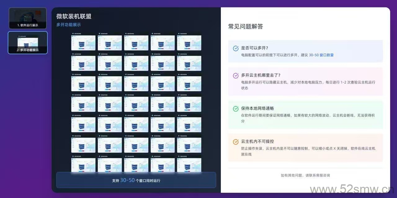 《威软装机联盟》 是一款针对于win7-win11 应用市场APP安装的平/台,通过云主机24小时给各大企业运营商APP刷下栽量获取收溢
