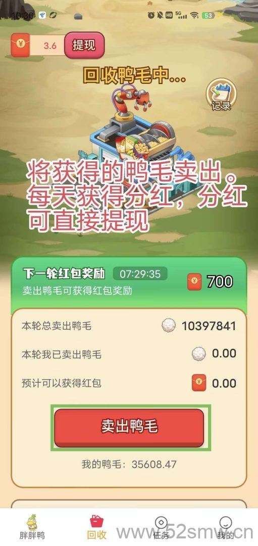 进入养鸭界面,点击喂养按钮5次,系统立即生成约2.8万鸭毛。鸭毛是平台的收益凭证,系统会在后台自动计入分红池,无需观看广告或完成额外任务。