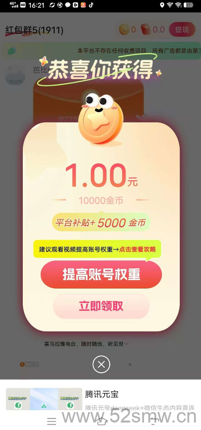 简玩新版首码打开后直接进入广告页面,系统每日推送高额广告,观看并完成指定操作即可获得平台币,累计1元即可点击提现按钮,金额秒转入绑定的微信或支付宝,整个过程免费无手续费。