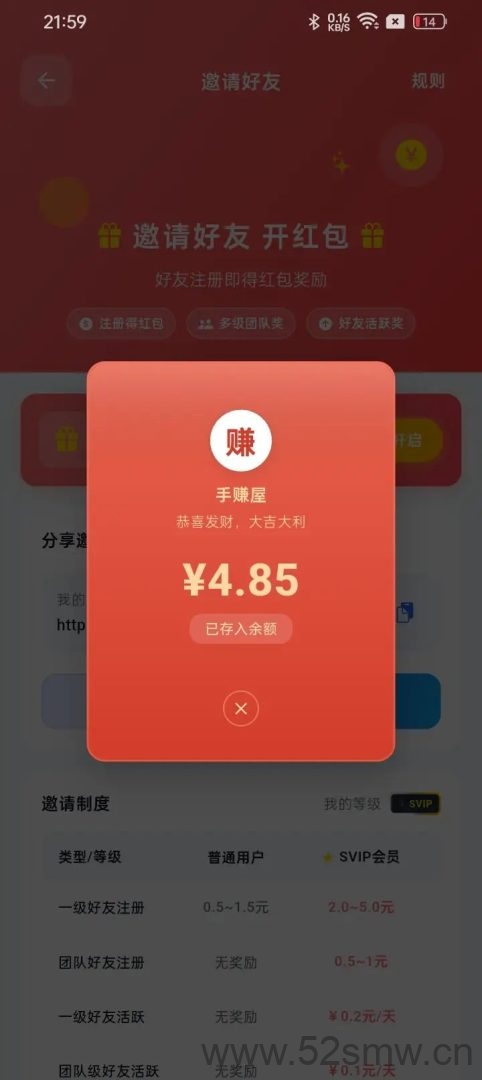 普通用户每成功邀请一位新用户可获1至2元红包,升级为SVIP后同样操作可获得3至5元红包,收益随邀请数量线性增长,平台提供专属渠道帮助快速获取高价值用户。