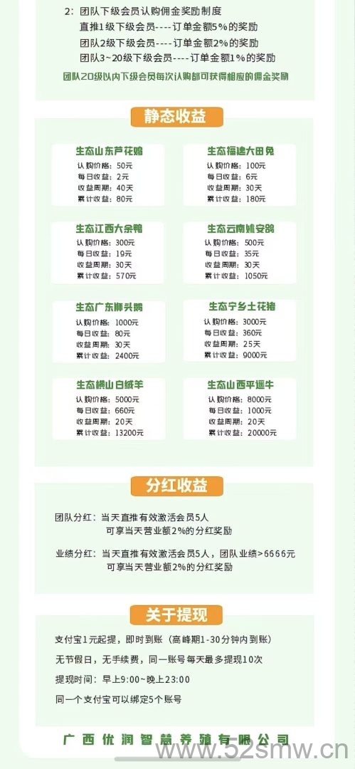 智慧牧场鼓励用户推荐朋友加入,用户每成功邀请一位好友激活账户,即可获得5元的现金奖励。此外,二级会员的订单金额也会给予一定比例的返还。如果在同一天内直推五名有效会员,还能享受营业额2%的分红。当团队业绩超过6666元时,用户将按照规定比例获得更多分成,让收益不断增加。