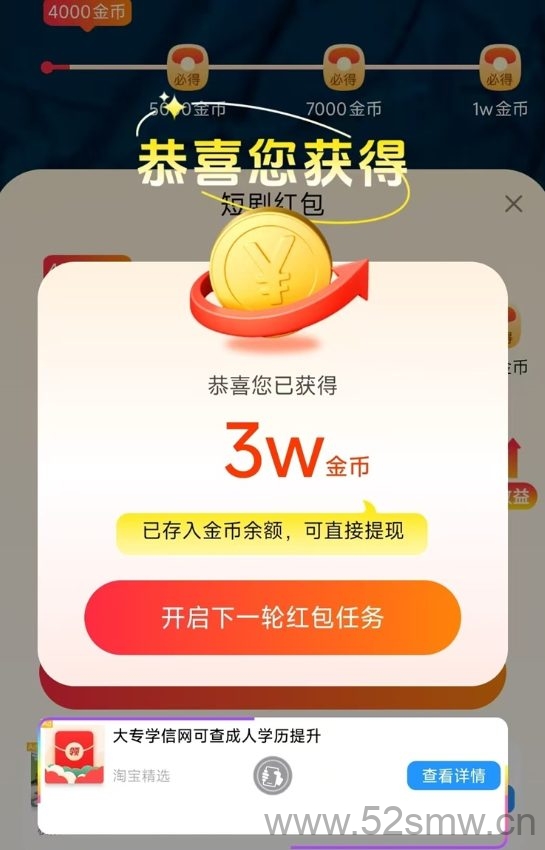 迁果短剧刚出广告赚台子,必得短剧+团长模式+长久,公司背景:迁贝大公司,玩法看短剧必得0.4-0.5-0.7-1米,保底看短剧加权重提升金币,满0.3米即可提,稳定性强,自己多手机一起玩多份收益,签到+最高补贴40%奖励。