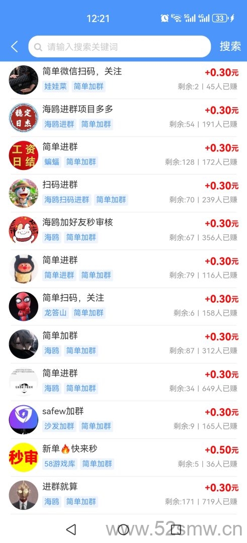 简单赚是一个让你轻松获得零花钱的项目。进入后直接搜索加群,用户只需扫码就能加入微信群开始赚钱。每个群的加入费用在0.3到0.6米之间,平均每10秒钟便能赚取一米。假如你加入100个群,收益可以达到30到60米,轻松实现零花钱的积累。
