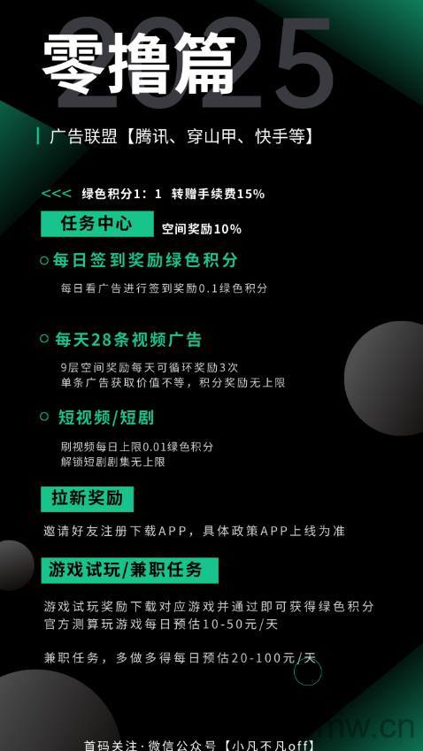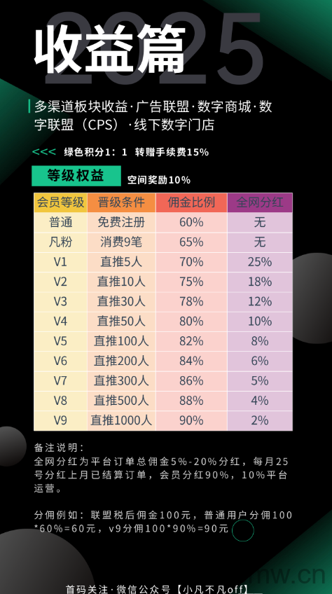 团队规模设定为三三复智9层,形成循环永动模式。用户观看广告时,收益将逐层向上反映,每次分佣均是从一级到九级合理分配。这一合规合法的模式确保用户能够不断扩大自己的团队,达到最大化的收益。