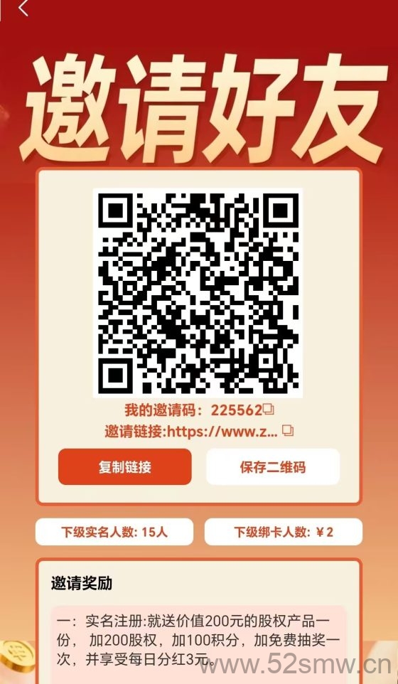 4:邀请满50人成为股东可以领取3580元现金奖励(加10000积分)