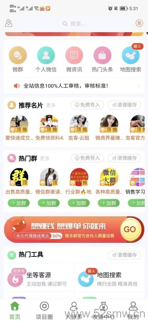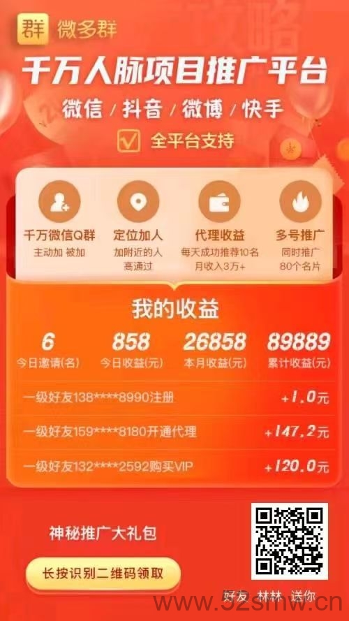 微多群app是能帮助您秒速获取大量真实客源人脉,做生意必备营销神器工具。微多群app可-键添加粉丝好友,快速扩展销售圈子,让您足不出户,轻松加人加群,出单赚钱!