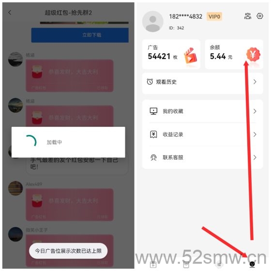 1、登录后,点击(红包)任意去一个抢先群,看视频领红包。