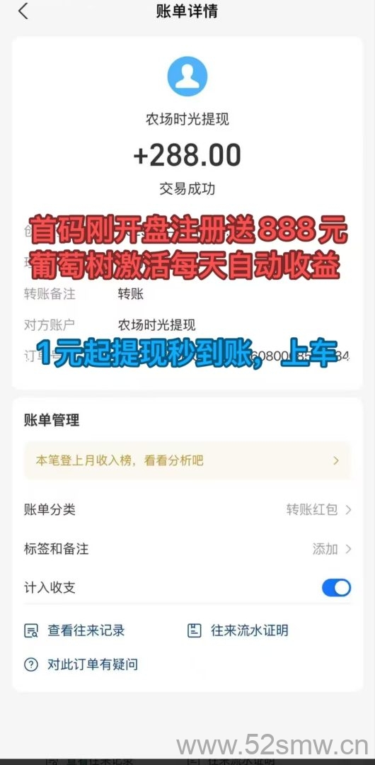注册后即可获得888元的葡萄树奖励,这意味着每天都能自动生成2元的收益。无需任何投资,只要分享给朋友,还能获得直推奖励,推广一个人就能获取4.5元的奖励,提现金额从一元起,非常灵活。