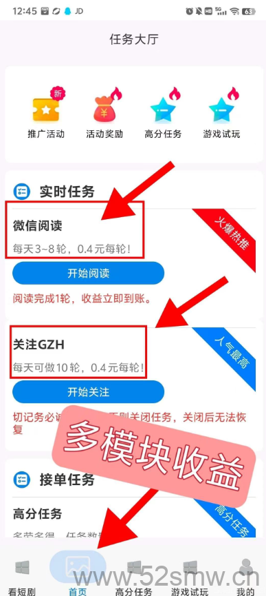 在柚米看点,阅读单价限时提高至0.4元每轮。GZH有效关注任务同样提升至0.4元每轮。实时任务满额奖励达到18元以上,没有上限,收益潜力巨大。此外,平台还提供高单价接单和游戏试玩任务,为副业增添更多可能性。