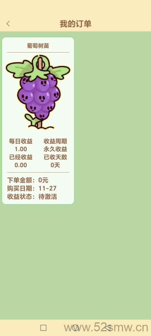 用户注册后可获得一颗永久葡萄苗,每天分红一元,但需任意购买一个水果以激活收益。这是平台的一项优惠。此外,还有二十级分佣制,懂得都懂,趁机占位不容错过。