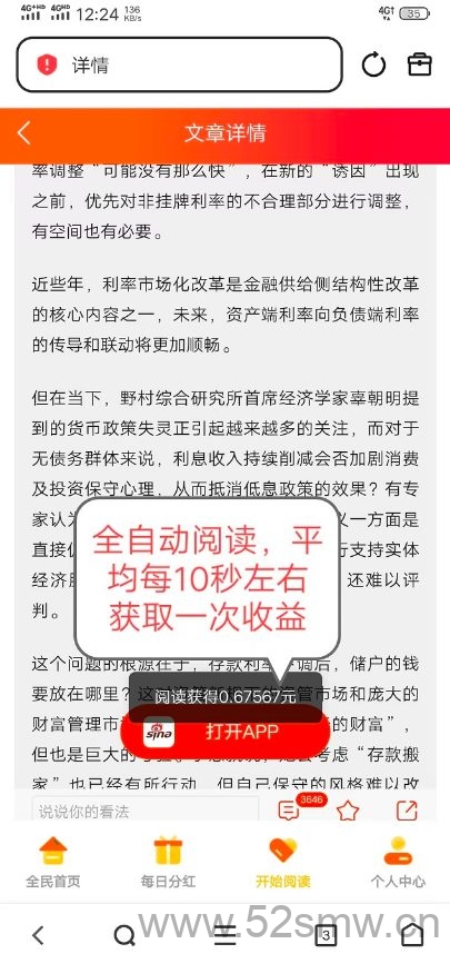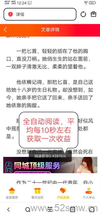 《天天阅读》是一个全自动浏览广告的赚钱项目。加入后,您只需点击开始阅读,便能每天轻松赚取200元以上,提现速度快如闪电,瞬间到账。