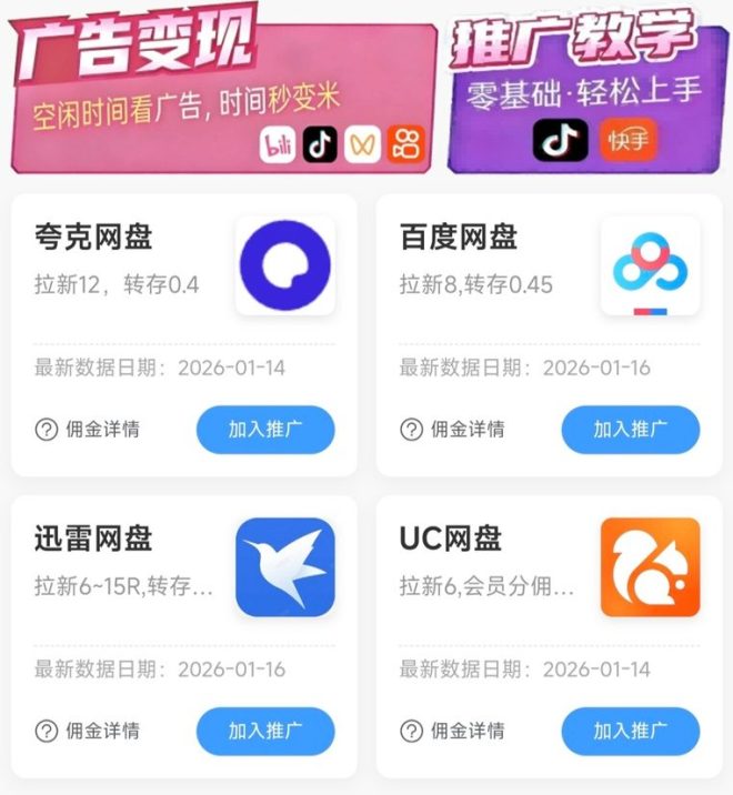 网盘拉新需求广,受众群体多,现在谁还不用个网盘存点资料、视频啥的,尤其是需要资料的学生党、上班族,还有喜欢存电影、电视剧的朋友,都是咱的目标用户。