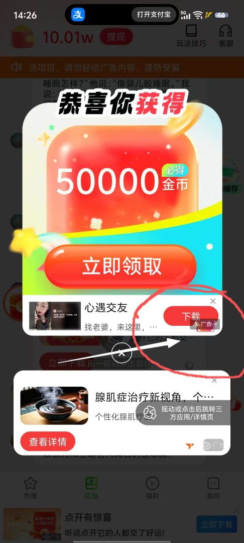 看下图,50000金币后面显示必得,就是顶包了,如图所示,