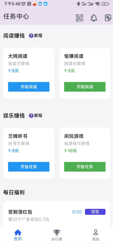 平台整合阅读文章、听书音频、观看广告、小游戏、日常任务多种赚钱方式,任务分散,随时可做,收益可以同步累积,不存在单一模式断档的问题。
