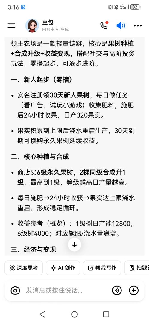 领主农场首码刚出,主打零撸参与模式,核心玩法围绕果树种植、合成升级和收益变现展开。整体设计偏轻量化,上手门槛低,新用户无需投入即可体验完整流程。