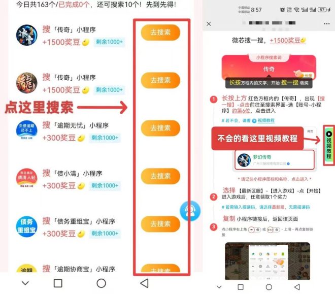搜一搜是最近复活的低门槛撸低保渠道,通过完成平台内的搜索任务获取收益,操作流程简单,耗时短,随手点几下就能出结果,适合碎片时间操作。