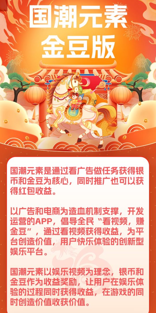 国潮宝石国潮金豆设有平台回收通道,用户将金豆参与回收后可获得红包奖励,广告收益与金豆收益同时进行,形成双模式收益结构,整体收益更加稳定。