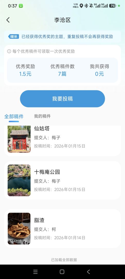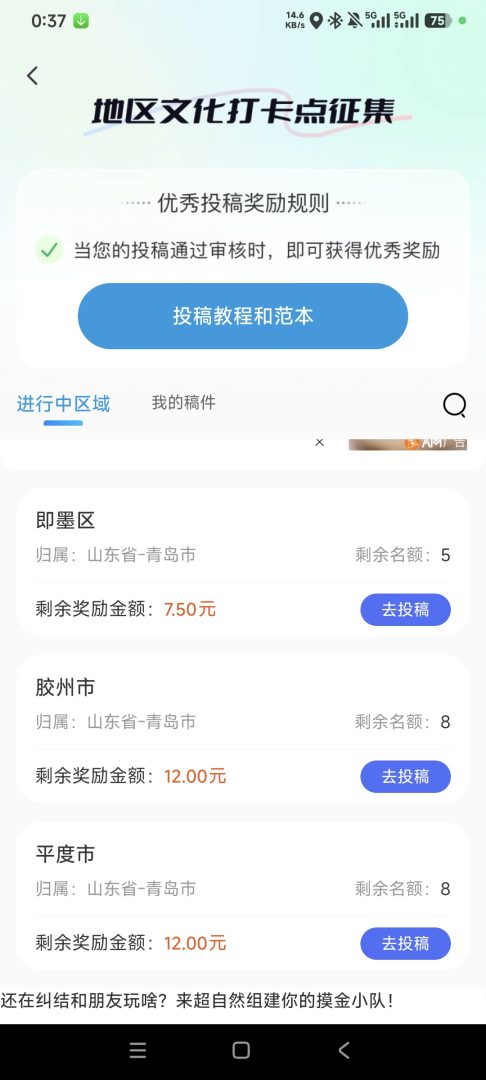 用户可通过投稿旅游景点内容获取额外红包奖励,真实内容更容易通过审核,适合喜欢分享出游经验的用户增加收入渠道。