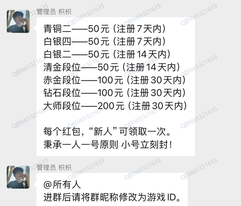 到达指定段位后自主申请官方裙去领取奖励即可 秒到