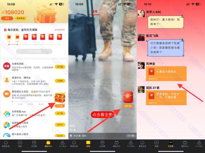 三个看广告的地方 宝箱 短剧 红包合规社群 从这三个地方陆续看广告 就可以