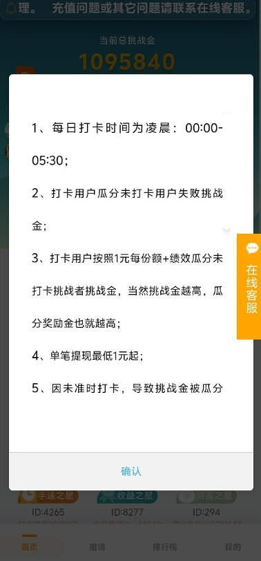 熬夜挑战是个微信签到打卡赚钱的小项目。微信扫码就能报名,主打晚上12点到5点半打卡,号称月入3000。首码刚上线,提现秒到账。