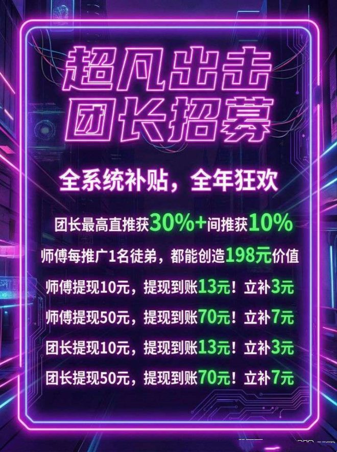 现在官方有补贴,提现10块实际到账15,提50到账80,活动一直有。福利全开,你报ID给团队还能升级成高团。团队长直接对接的话,能开通高级团队权限,赚得更多。