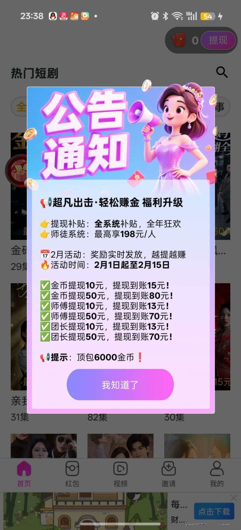 里面有经典红包群、刷视频、看短剧好几种玩法。记住一定要先顶包到6000金币,然后再去开任务。