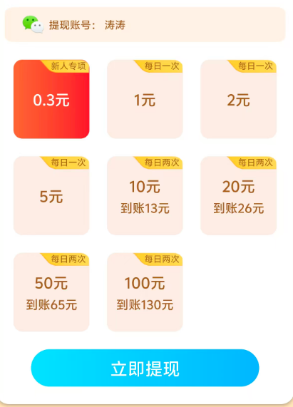 目前是提现10到账13,以此类推