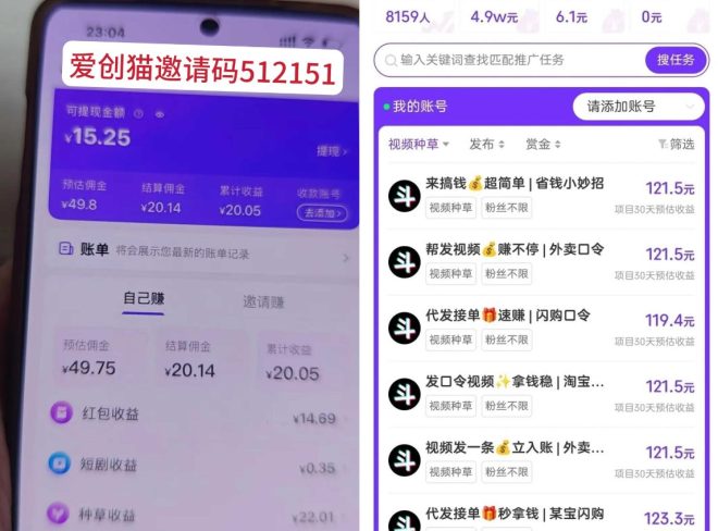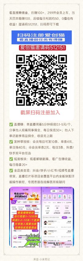 4.抖音快手小红书视频号等直播带货,直播切片等项目都有开会员29.9包赔上车,当天回本润100,后续每天50左右利润下图扫码下载,爱创猫邀请码512151