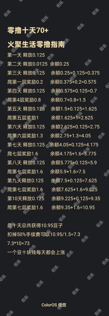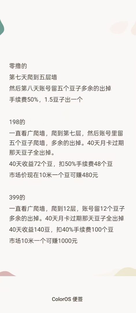 经过约一周的努力,逐步爬墙到达7楼,开始每天出售信用豆。在第40天,所有信用豆出售后可获得消费积分。