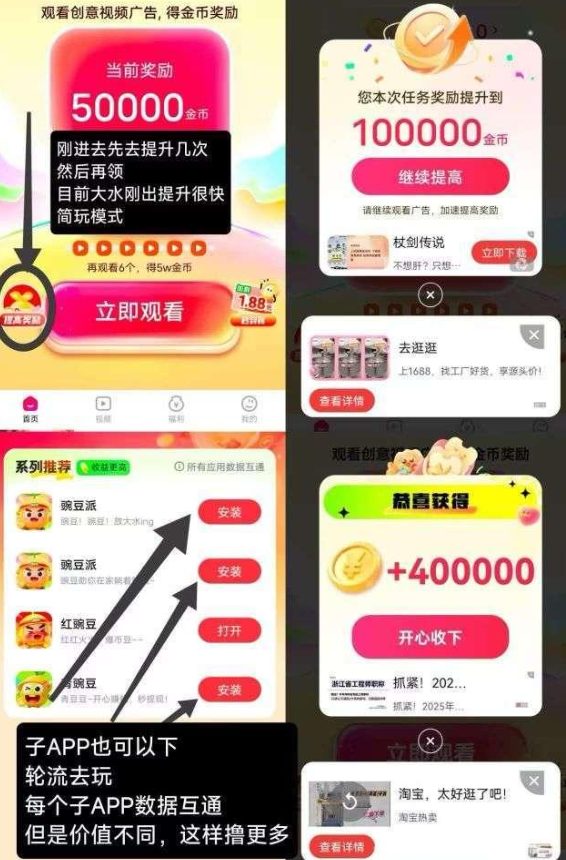 使用豌豆派(蓝豌豆)时,不妨同时下载其他子APP。多个APP联动使用,可以在不同平台上观看广告,提升总收益。累计收益一起计算,实现收益最大化,轻松获得更高回报。通过橙豌豆平台,广告收益已经不再是难题。