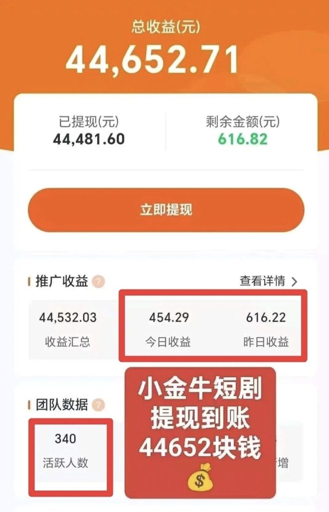此前小金牛短剧已运营2年+,目前收溢依然稳定,吊打如今市面上所有同类型产品。
