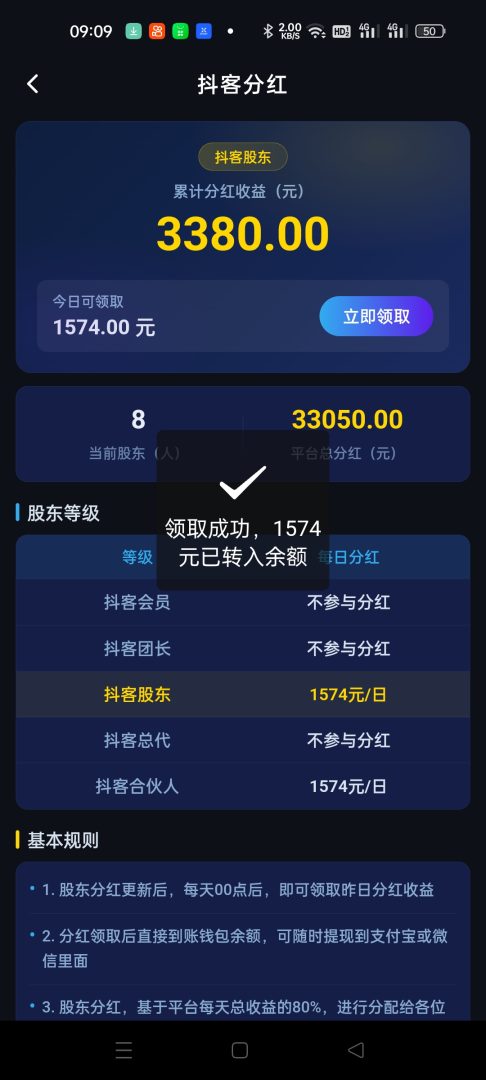 成为抖客会员后,即可在推广托管服务中获得额外奖励。直推有效托管数达到要求可升为团长或股东,多种身份对应不同奖励和平台分红,持续提升收益。